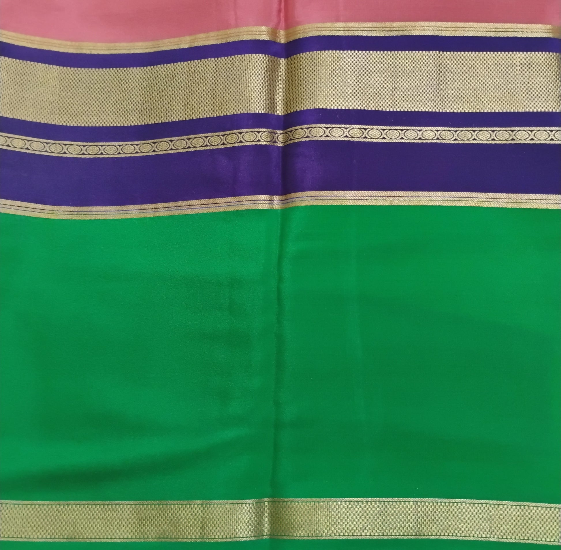 PureMysoreSilk Pink Navy-Bottle Green border Saree