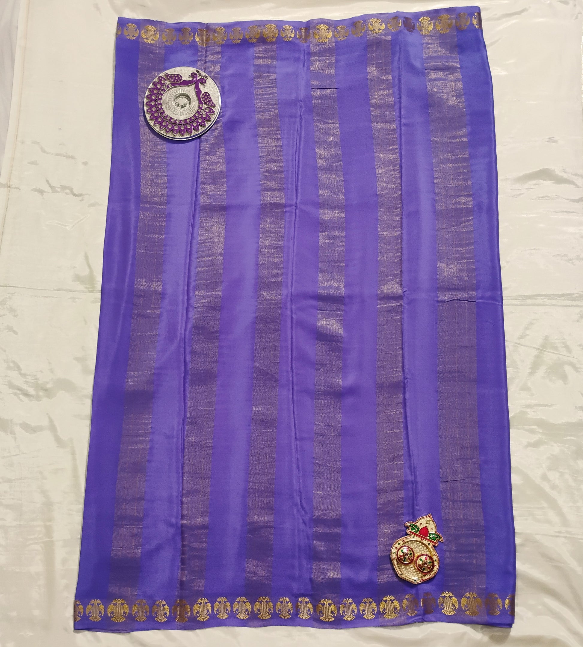 Step into a world of royal charm with this Pure Mysore Silk saree in a vibrant purple shade. Adorned with the majestic Gandaberunda motif, it adds a playful twist to tradition, making every drape a celebration of elegance and fun. Perfect for those who love to blend heritage with a splash of whimsy!