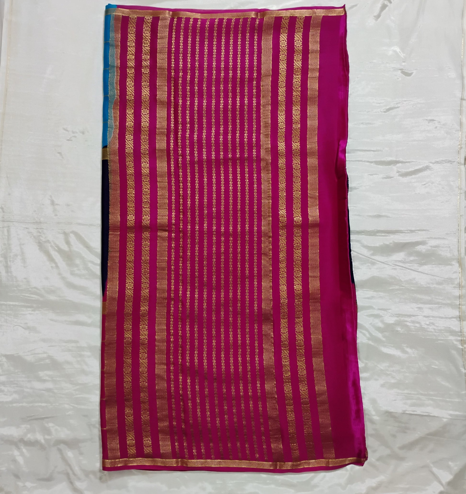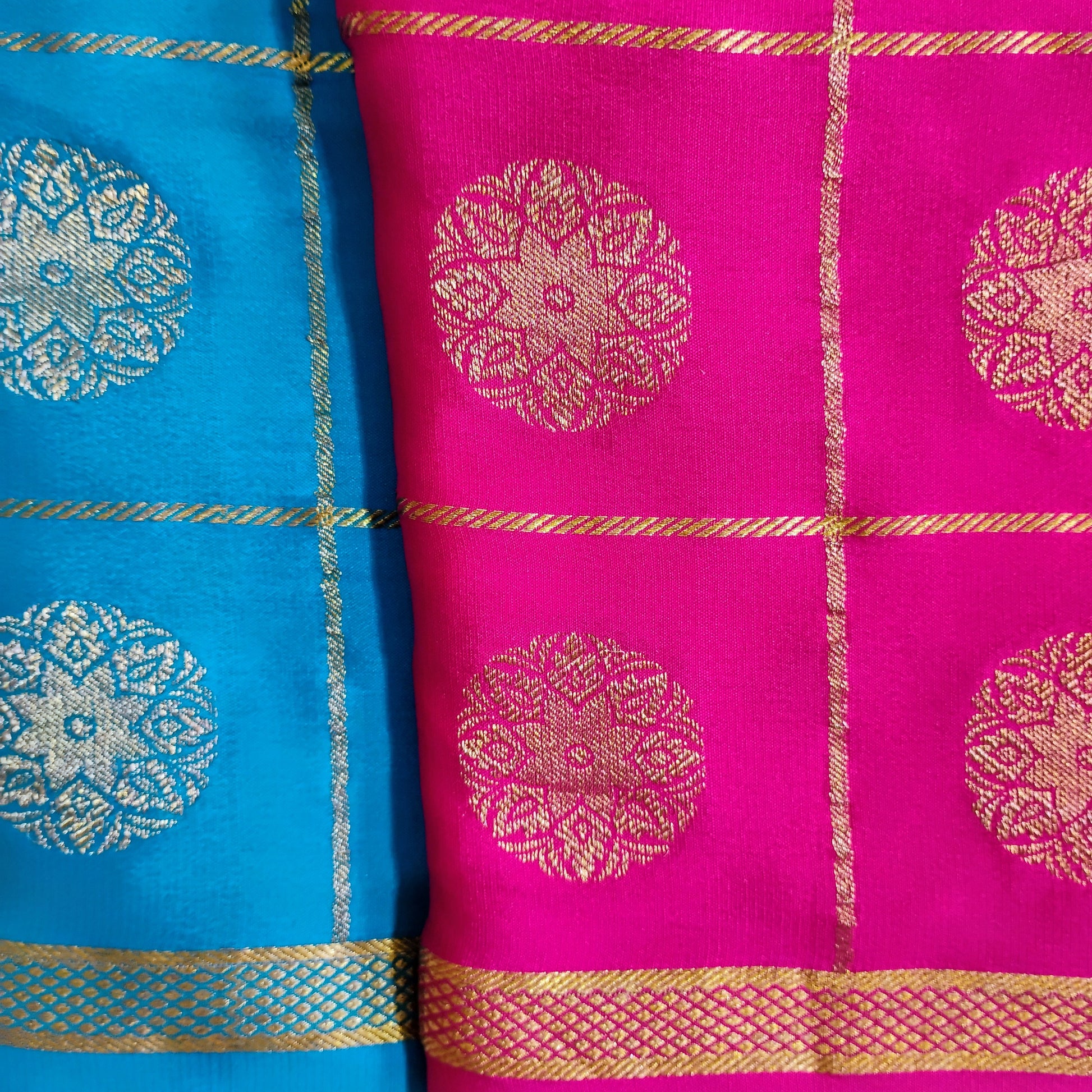 PureMysoreSilk with Blue-Red boxed design Saree
