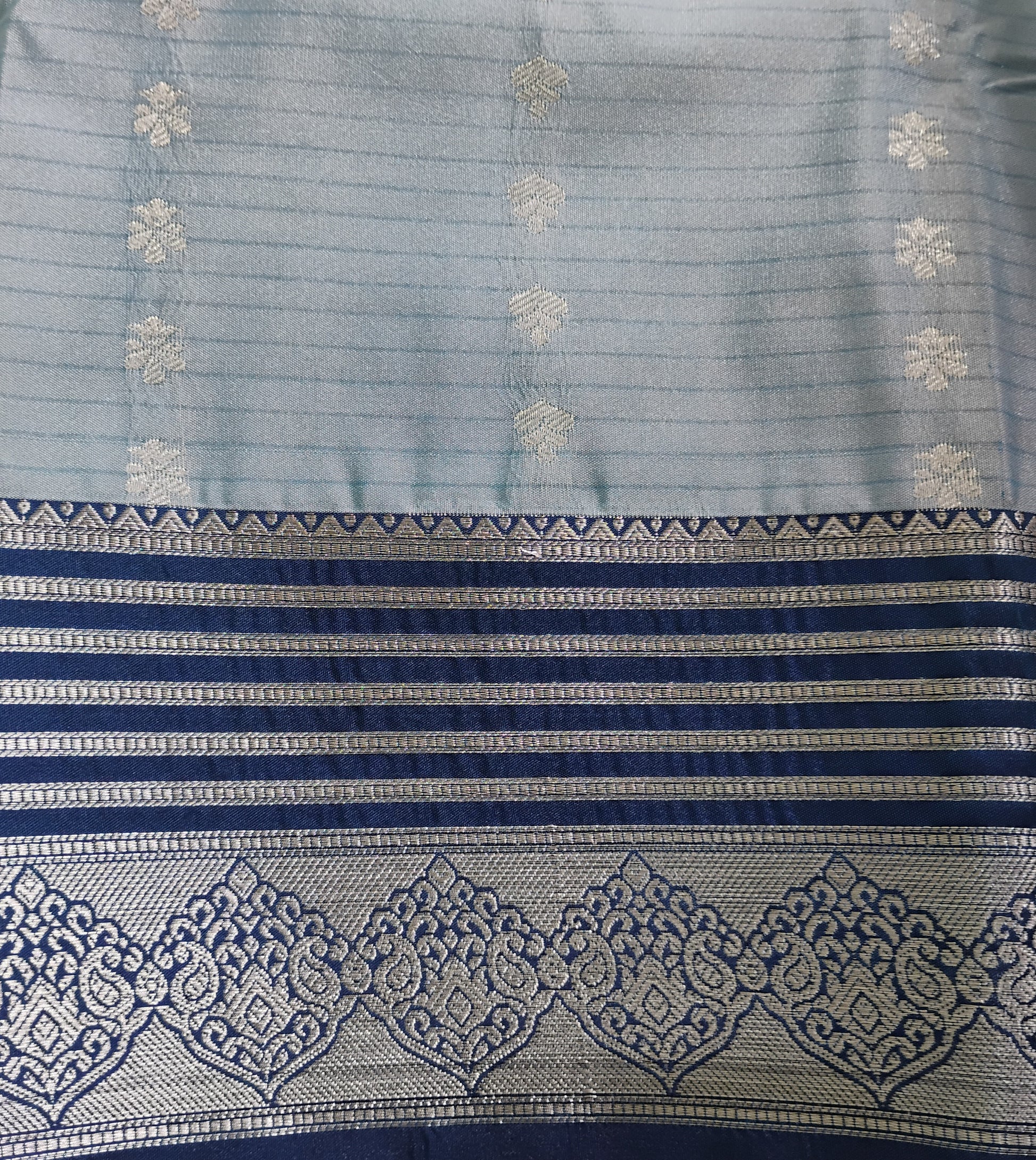 SemiSilk bright blue striped Saree